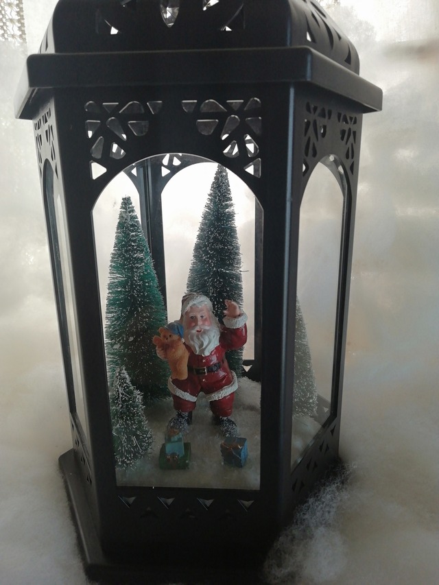 ランタン型LEDライトサンタ置物 (ミラーボール/カラー付)