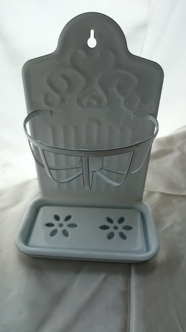 サイズ: W15×D10×H22cm 材質:ホーロー製 アンティーク感たっぷりのスポンジ&ソープホルダーです。 洗面所の柱に掛けるだけで、おしゃれな雰囲気になります。 ※アンティーク風の仕上げのため、わざとキズや凹みを付けていたり、 ホーローが乗って いない部分がありますのでご理解ください。